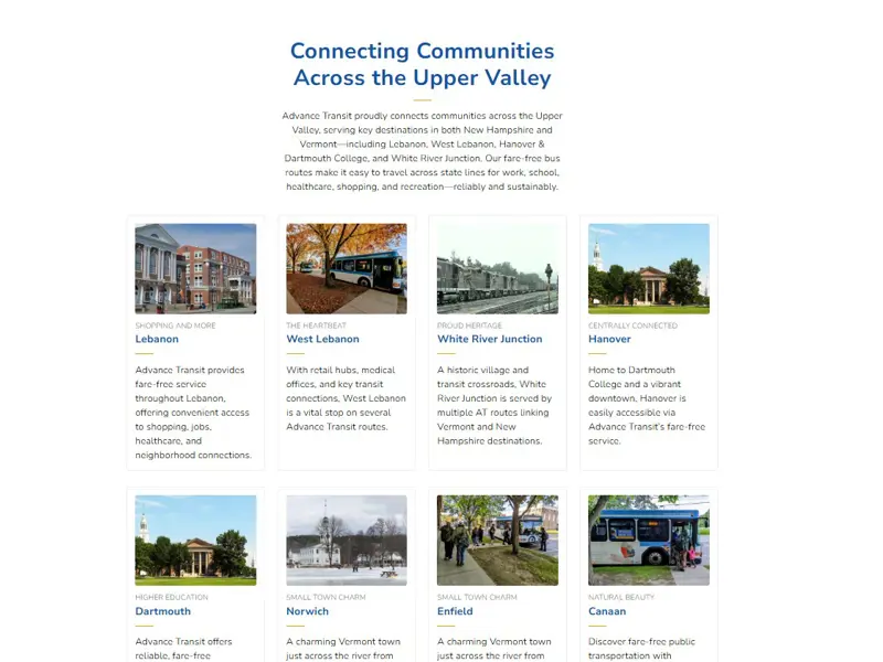 - · Points of Interest Map: Want to know what you can explore by bus? The site now features key destinations and attractions across the Upper Valley—making transit not just practical, but fun.