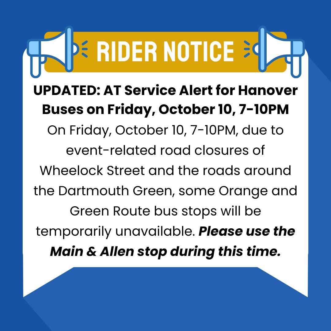During this time, riders can catch the Advance Transit bus at the Main & Allen stop instead.